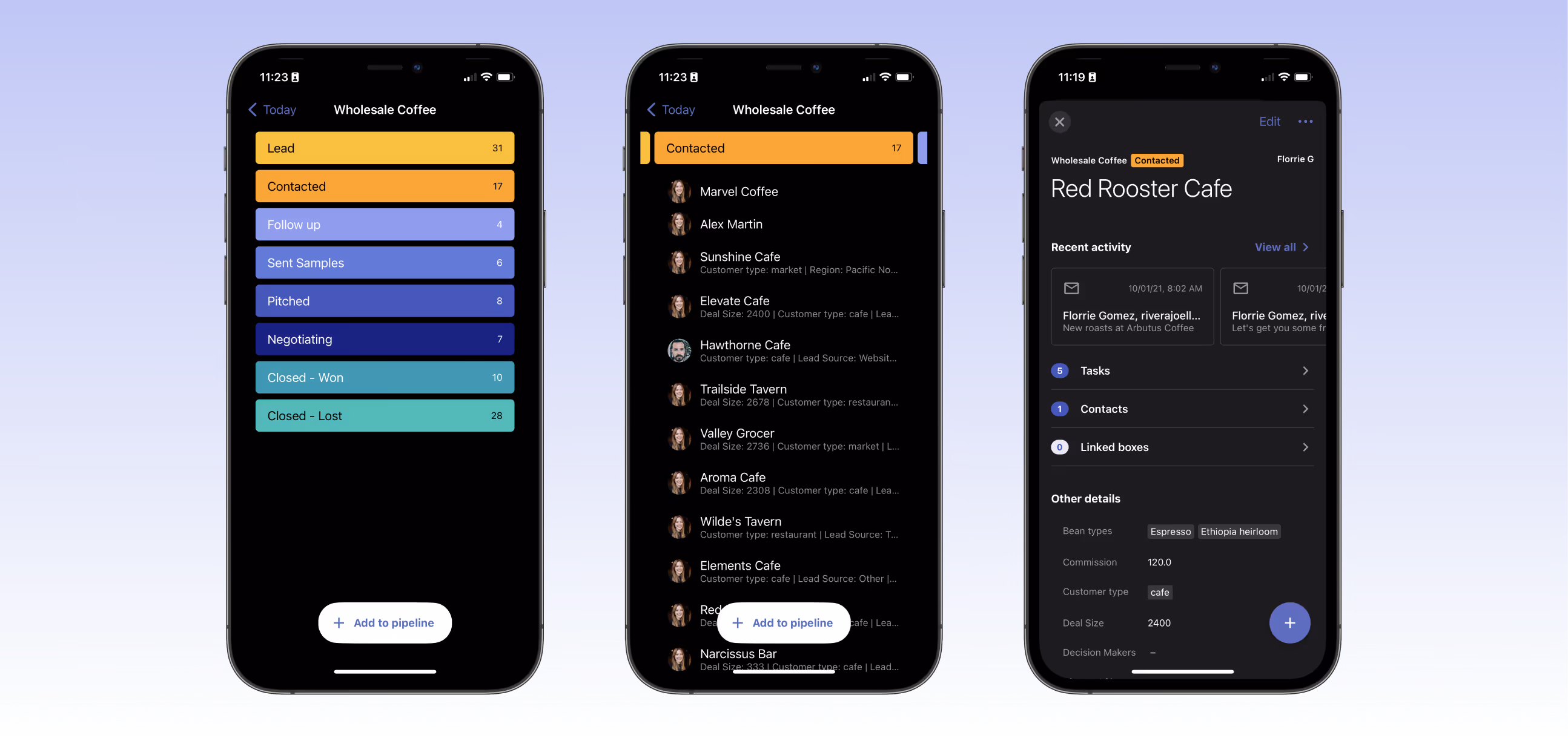 You’ve always been able to create boxes for leads and opportunities in your pipelines from your iPhone or iPad, and this update makes sure you’re able to record addresses, phone numbers, and more for each individual contact.